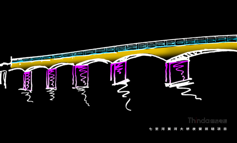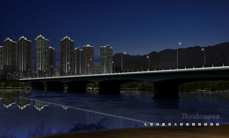 七里河黃河大橋建于1977年,是當(dāng)時國內(nèi)新建的黃河上最大跨度的鋼筋混凝土懸臂梁橋。信達(dá)對其夜景提升提供全過程服務(wù)。在照明設(shè)計中,強(qiáng)調(diào)扶手、欄板、橋墩結(jié)構(gòu),功能性與裝飾性照明兼具,能夠突出橋體的端莊與大氣。在工程施工期間,信達(dá)電通全程把控效果展現(xiàn),并提供后期技術(shù)咨詢維護(hù)服務(wù)。