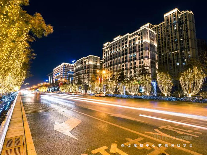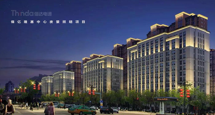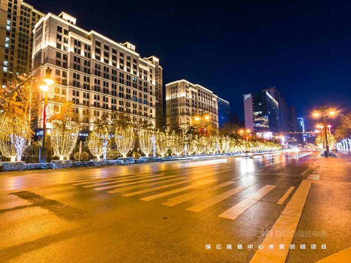 信達(dá)科技對(duì)保億隆基中心和風(fēng)景御園等周圍建筑樓體進(jìn)行亮度規(guī)劃,樓體頂部采用一級(jí)照明,突出建筑頂部結(jié)構(gòu),營(yíng)造天際線的效果。