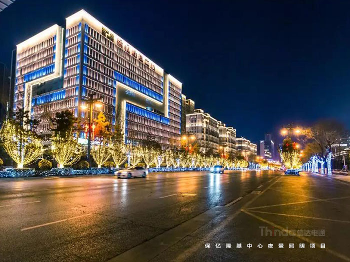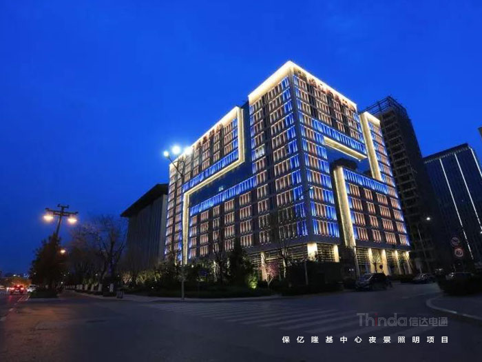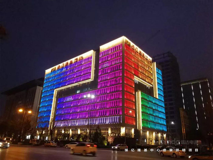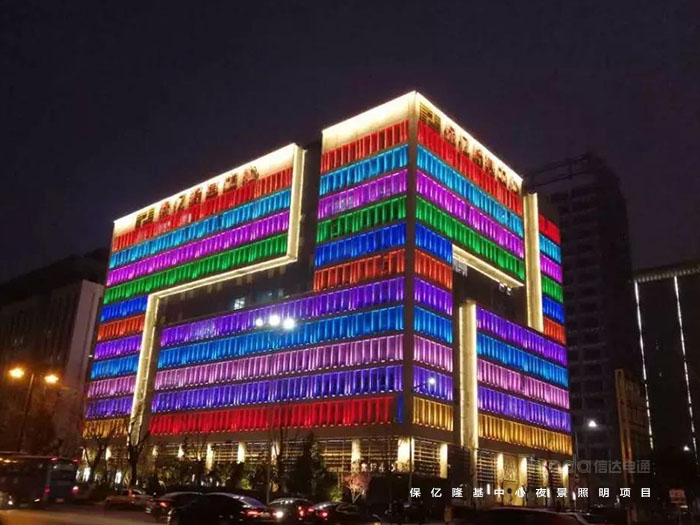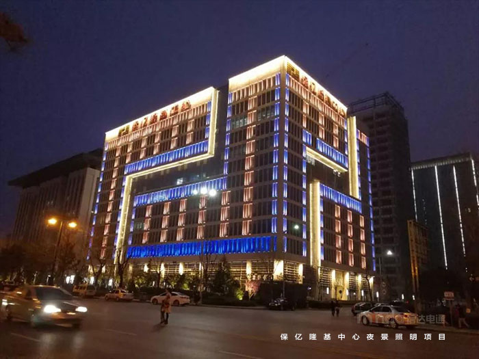 保億隆基中心位置特殊,屬于行政辦公范圍,因此建筑應(yīng)符合市政類建筑照明要求,以黃、白光為主,體現(xiàn)莊重之感。信達(dá)科技設(shè)計(jì)組夜間多次調(diào)試燈光,以達(dá)到設(shè)計(jì)規(guī)劃預(yù)期效果。
