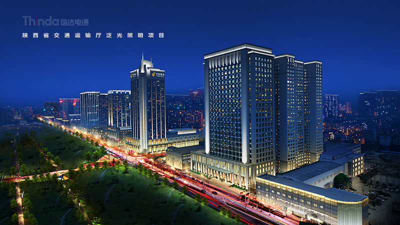 陜西省交通廳是2016年西安高新區整體區域照明設計規劃的一份子,電通根據建筑特點以及所處的地理位置結合周邊的建筑和景觀,對陜西省交通運輸廳進行照明設計改造工作。設計后的夜景照明效果強調天際線效果,同時增加建筑立面層次感。暗區與明區想映襯,凸顯建筑主體。